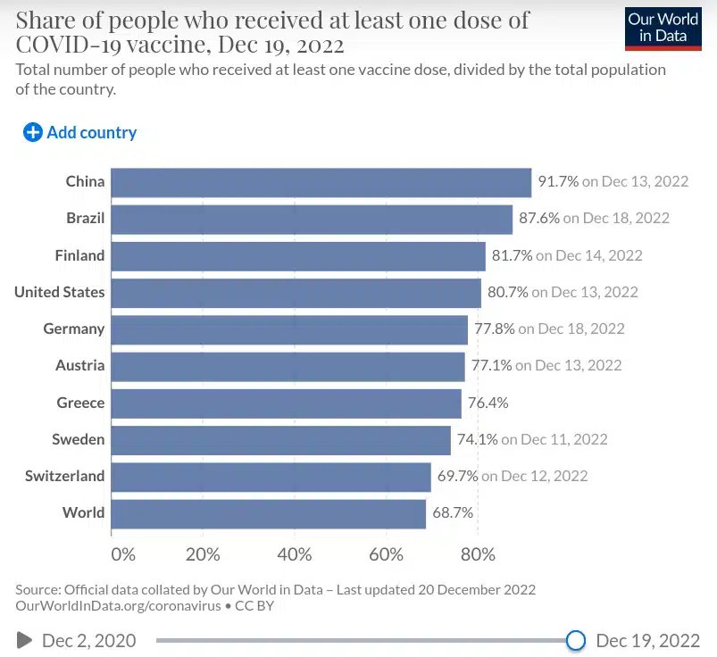 Griechenland hatte im Jahr 2022 etwa 10,3 Millionen Einwohner. Die Impfquote gegen Covid-19 lag laut am 28. Februar 2023 bei 76,4 Prozent für mindestens eine Impfung und bei 73,6 Prozent für eine vollständige Impfung. Das bedeutet, dass etwa 7,9 Millionen Menschen in Griechenland mindestens eine Impfung und etwa 7,6 Millionen Menschen eine vollständige Impfung erhalten haben. Eine Auffrischungsimpfung haben 68,6 Prozent oder etwa 7,1 Millionen Menschen bekommen. [Stand 05.2023]