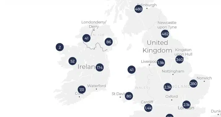 In Dublin sind die Preise höher (6.000 Euro pro Quadratmeter), während sie in Donegal niedriger sind (1.000 Euro pro Quadratmeter). Die durchschnittlichen Baukosten betragen etwa 240.000 Euro oder 2.400 Euro pro Quadratmeter. Die Mietpreise variieren je nach Lage und Größe des Hauses, mit einer durchschnittlichen Miete von 1.800 Euro pro Monat oder 18 Euro pro Quadratmeter. [Stand 05.2023]