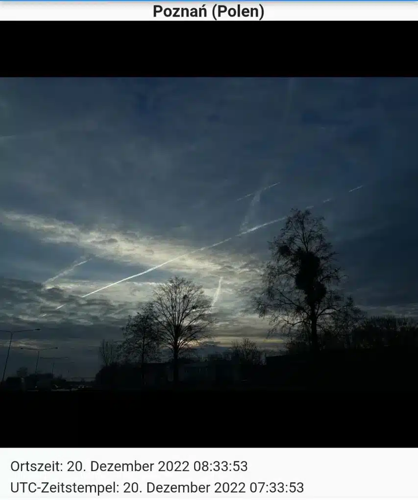 Es gibt keine zuverlässigen Aussagen von Regierungen oder Politikern zum Thema Chemtrails. Dennoch sind diese durch Flugzeuge ausgebrachten Streifen am Himmel in den meisten (westlichen) Ländern, beinahe täglich zu beobachten. Trotz der mangelnden Faktenlage gab es in der Vergangenheit immer wieder Whistleblower, darunter (Ex)Piloten, Politiker, Forscher usw., die die Existenz eines “Chemtrails-Programms” bestätigt haben. Für das Land Polen kann mit ziemlich hoher Wahrscheinlichkeit davon ausgegangen werden, das hier regelmäßig Chemtrails gesprüht werden.