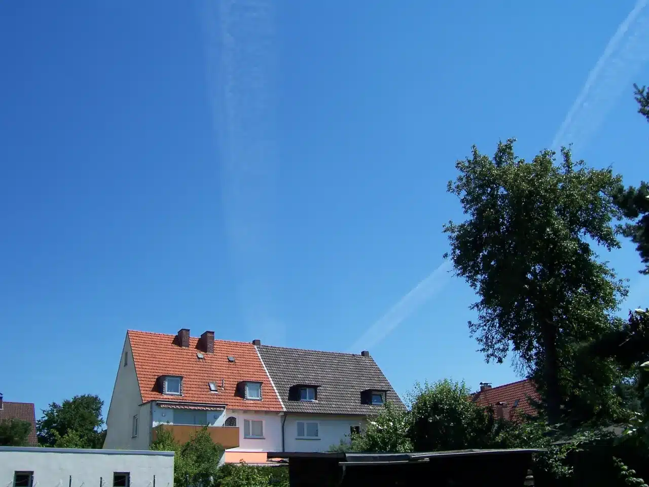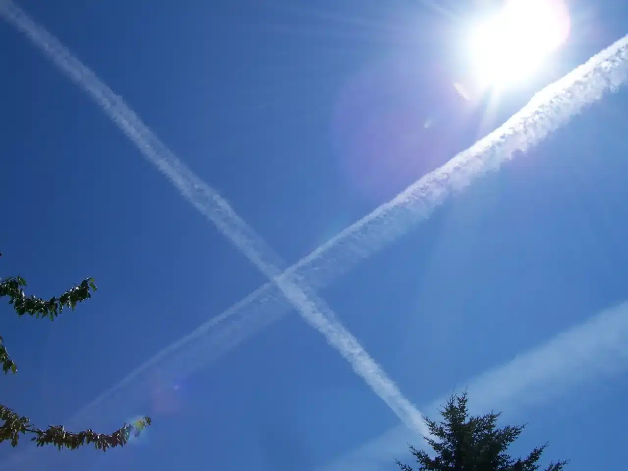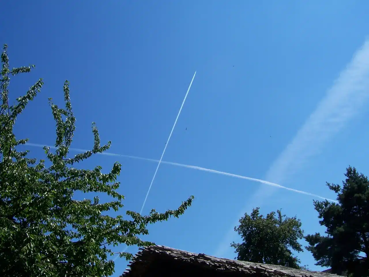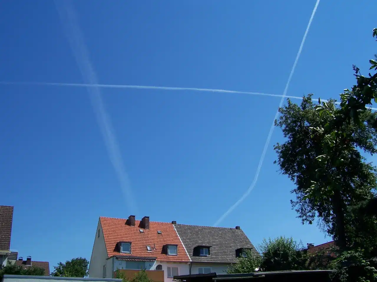 Etwa zwei Wochen später, an einem sonnigen Sommertag im Jahr 2006, mähte ich wie jede Woche den Rasen. Plötzlich blieb ich wie angewurzelt stehen: Am Himmel befanden sich lange, Kondensstreifen, die sich teilweise überkreuzten – und einige ließen sogar vermuten, dass das Flugzeug, das sie ausgebracht haben musste, eine Kurve geflogen war. Ich ließ den Rasenmäher im Garten stehen, rannte ins Haus, schnappte mir meine Digitalkamera und begann, den Himmel zu fotografieren.